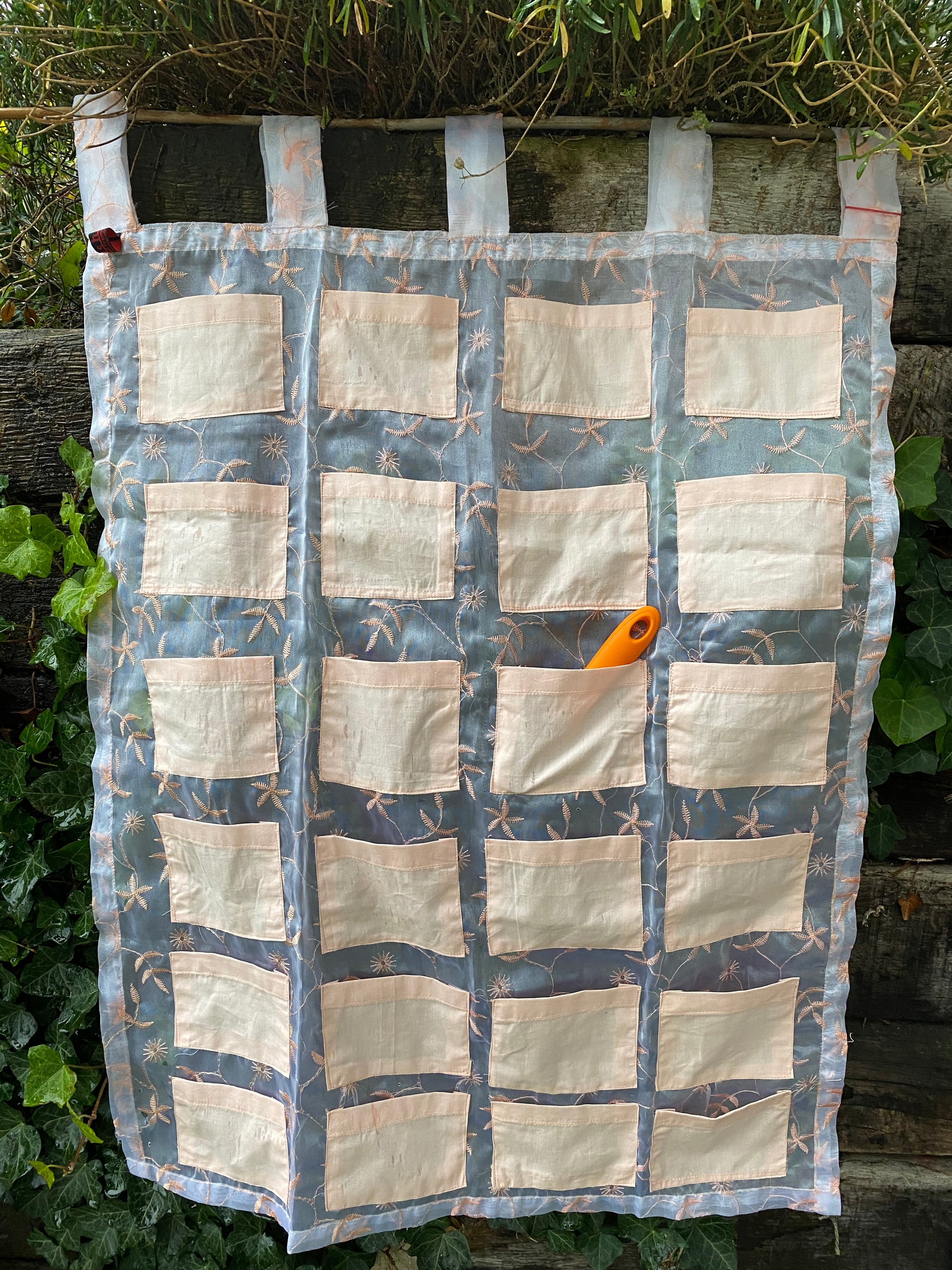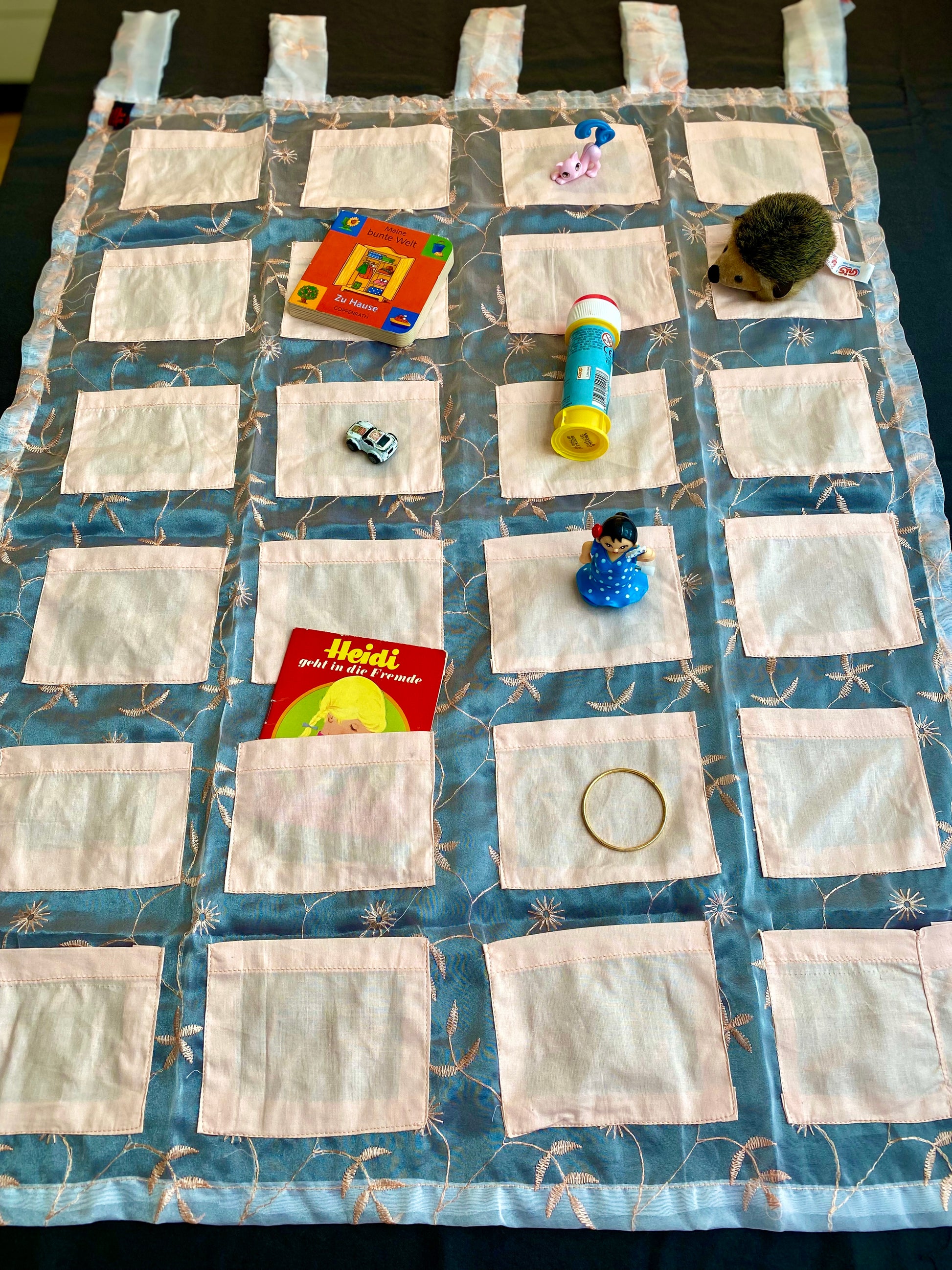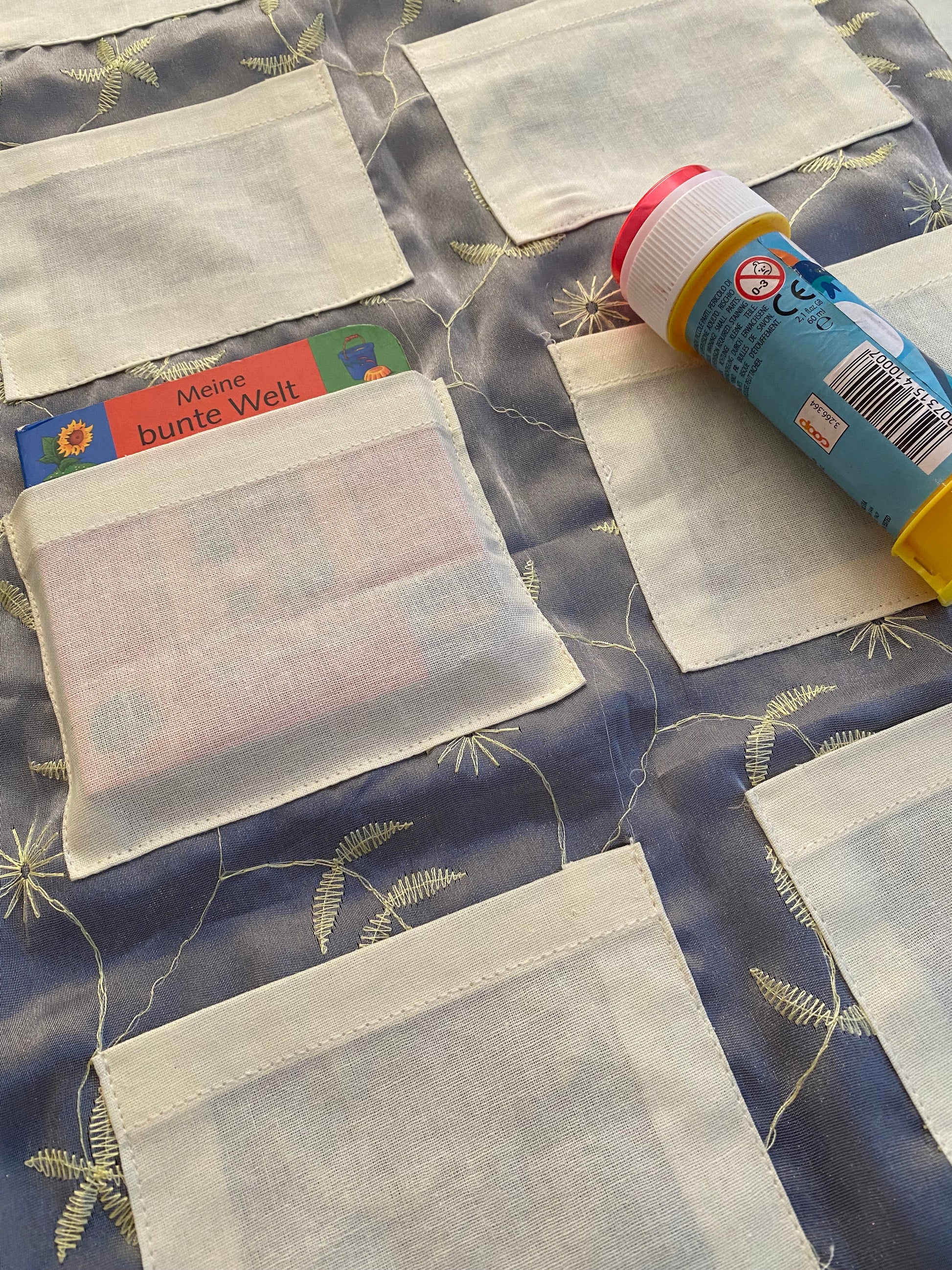 Adventskalender Wandbehang mit aufgenähten Täschchen die mit Kleinigkeiten gefüllt werden.