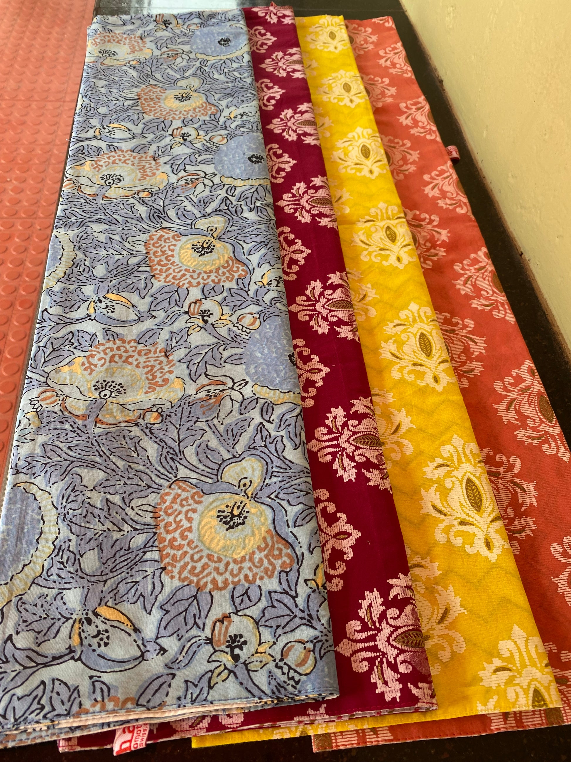 - Handbedruckter Baumwollstoff (Blockdruck) – traditionelle Technik aus Jaipur, Nordindien