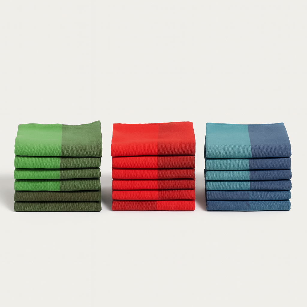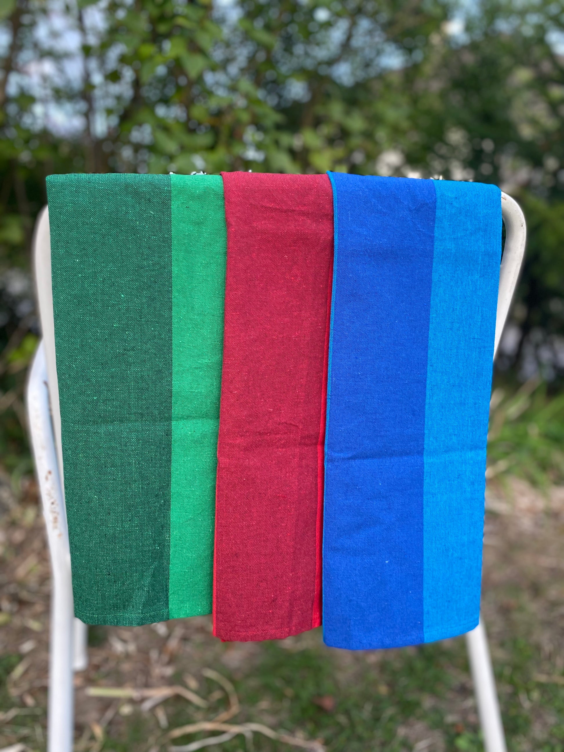 Dieses hochwertige Küchentuch wird in traditioneller Handarbeit aus reiner Baumwolle gefertigt. Jedes Tuch ist ein Unikat – mit individuellen Streifenmustern und Farbvariationen, die den handgewebten Charakter unterstreichen.