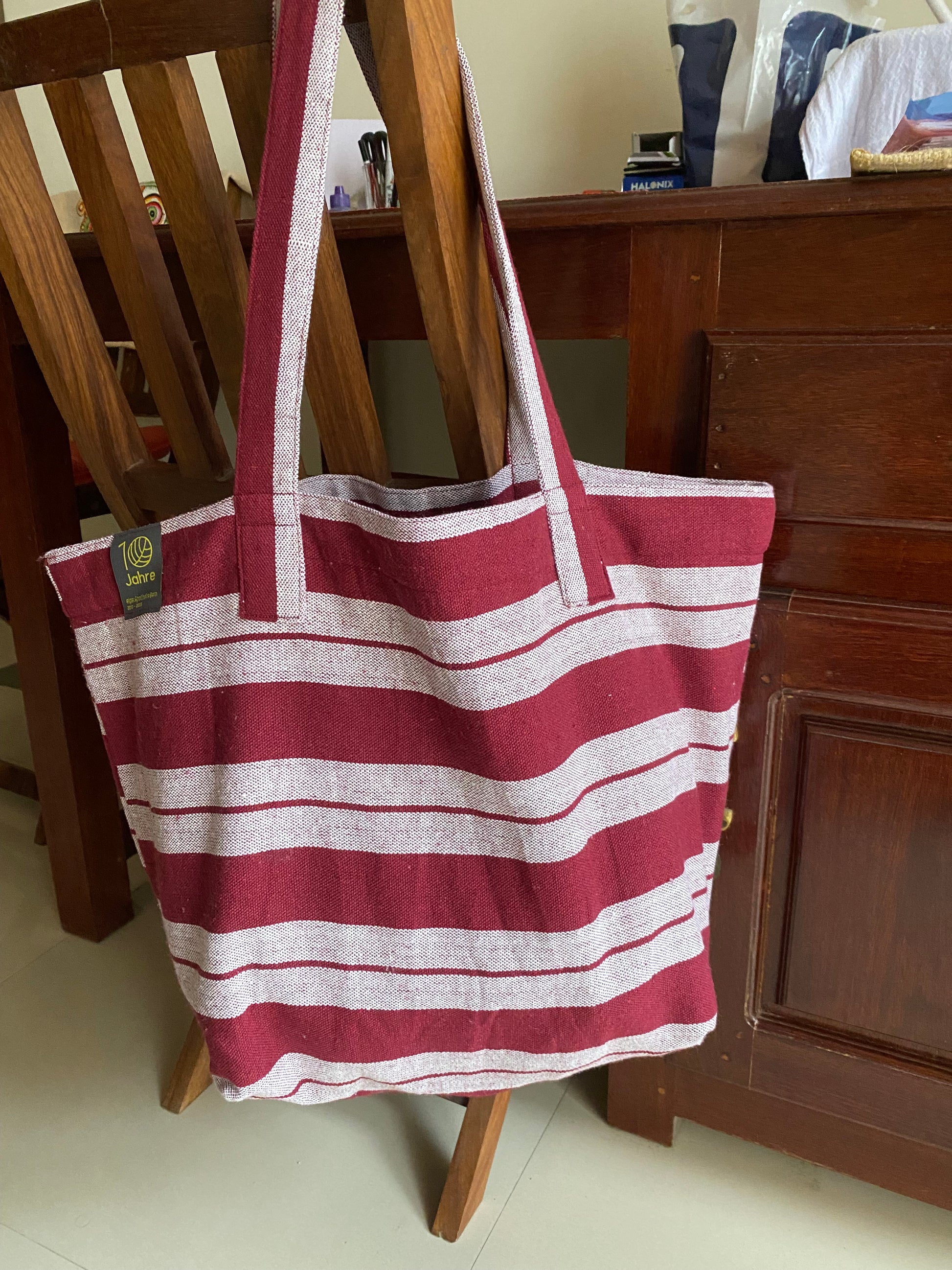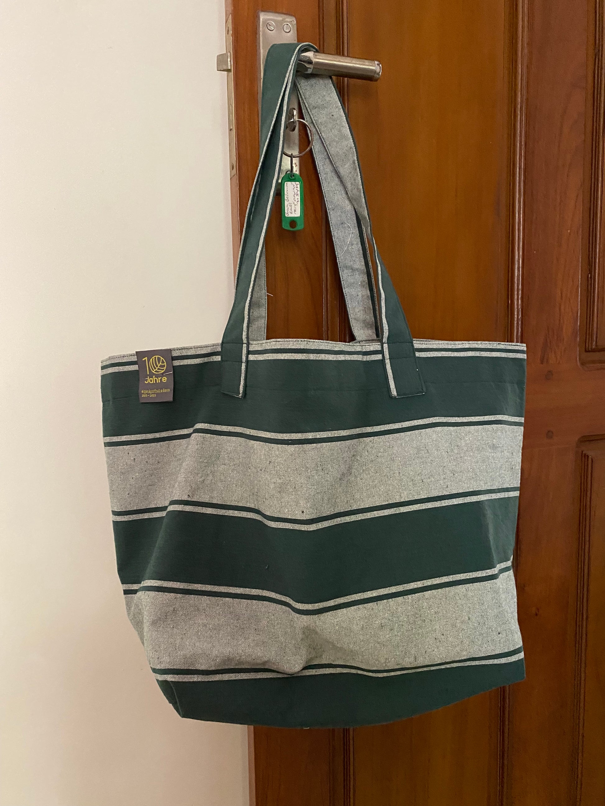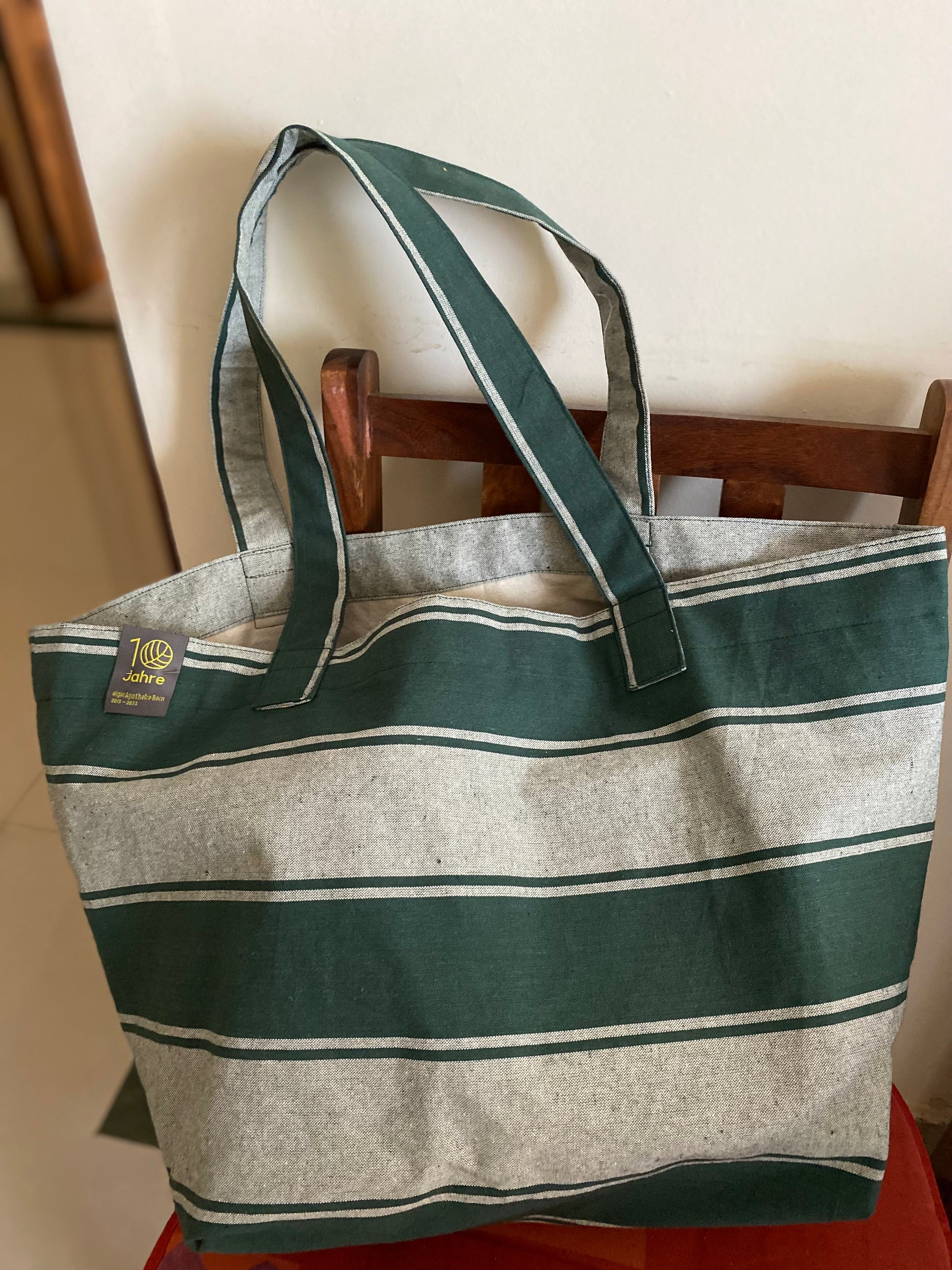 Diese Tasche überzeugt durch ihre schlichte Eleganz und ihre nachhaltige Herstellung. Sie wird in liebevoller Handarbeit gefertigt und besteht aus hochwertigen Naturmaterialien, handgewebte Baumwolle. Die sorgfältige Verarbeitung macht sie zu einem langlebigen und vielseitigen Begleiter im Alltag.