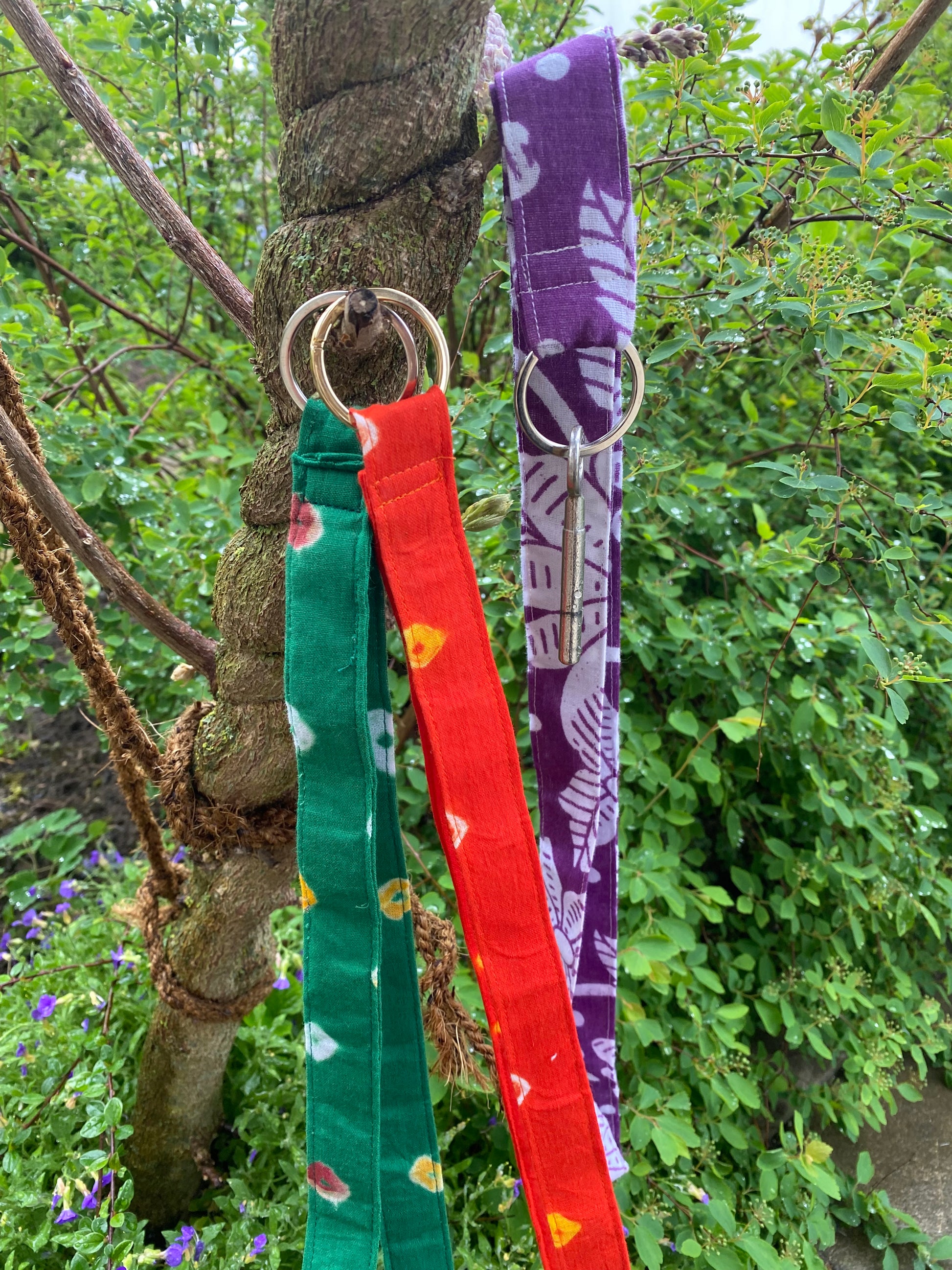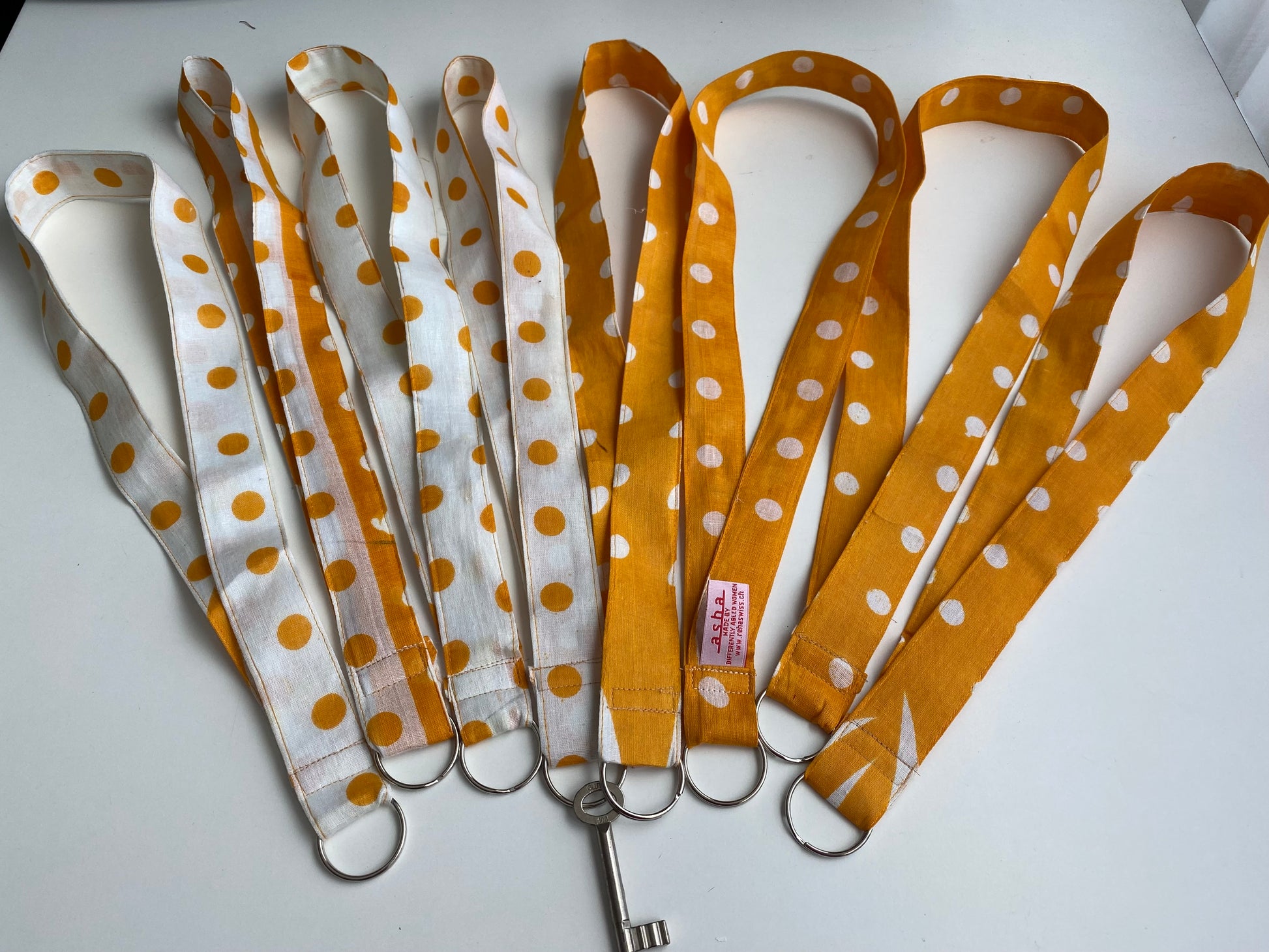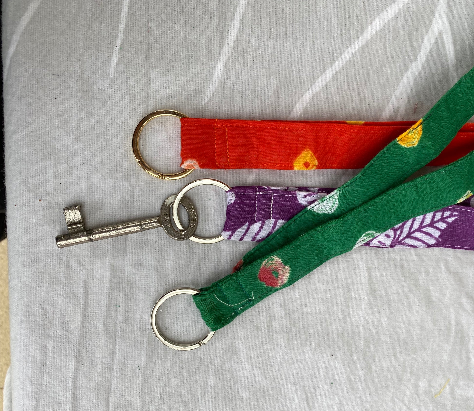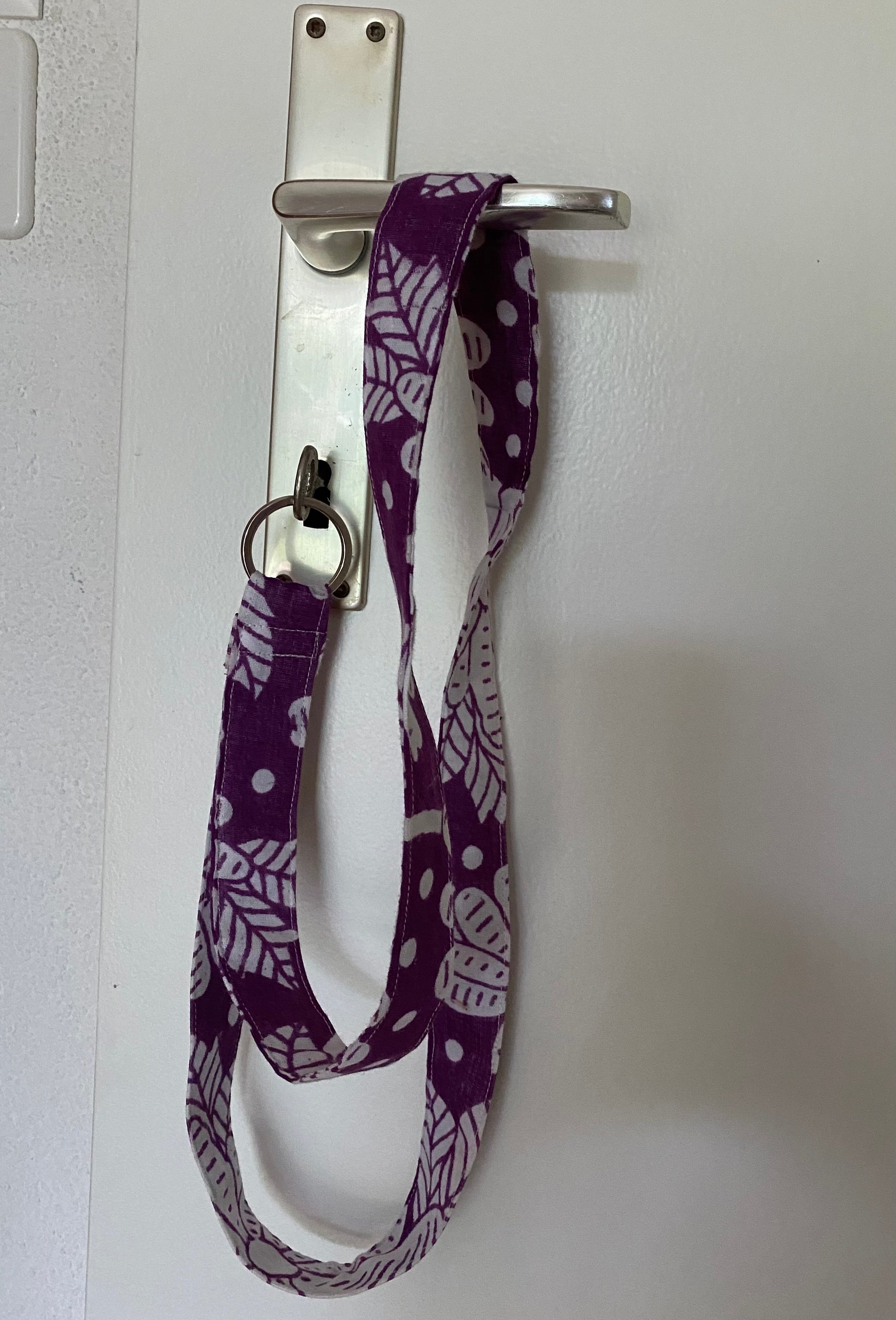 Unser Schlüsselanhänger hat ein ca. 25cm langes Textilband, so kann er um den Hals-oder am Handgelenk getragen werden. Praktisch auch für Zimmerschlüssel, die vor den Kindern gesichert werden müssen.