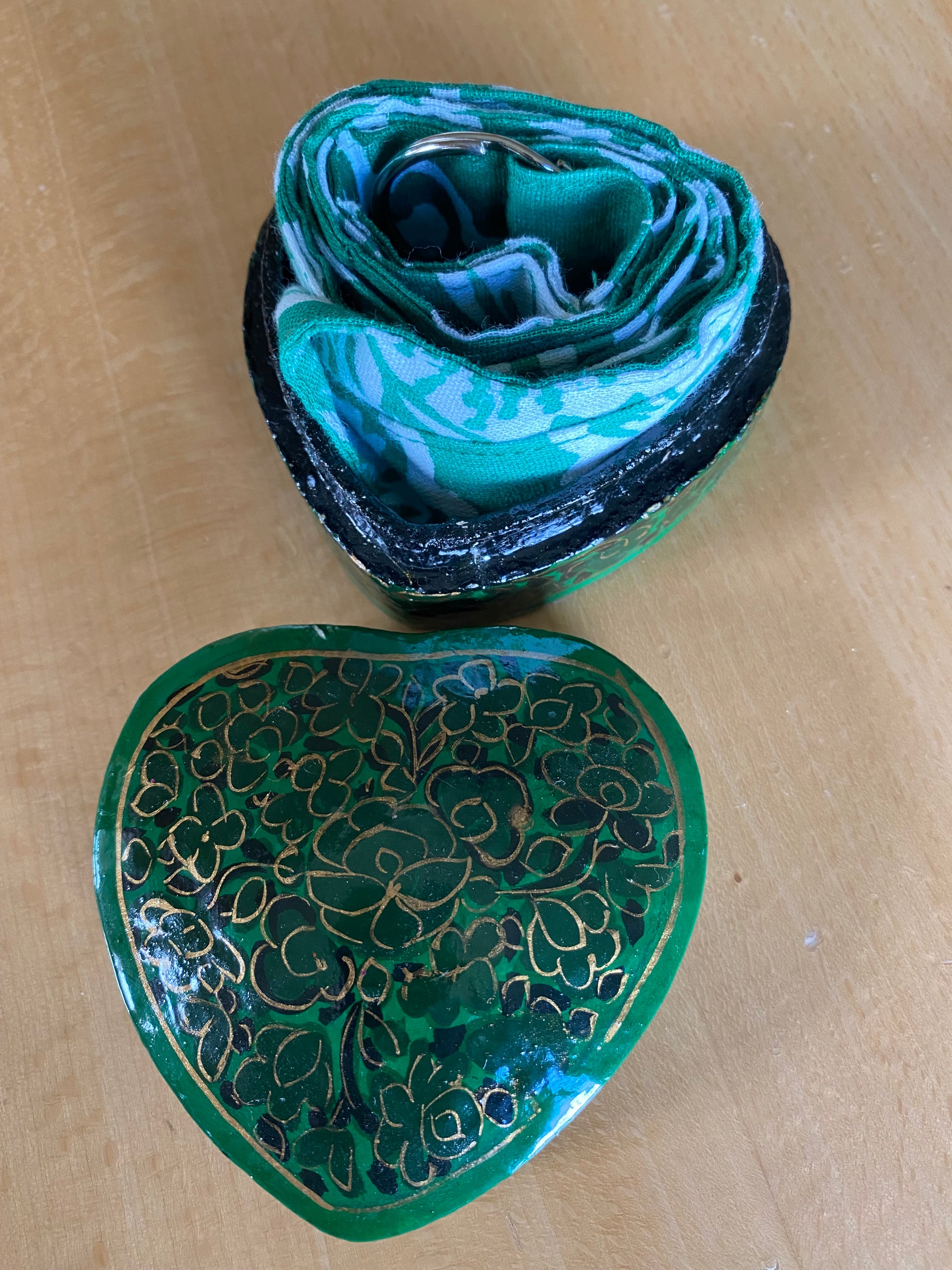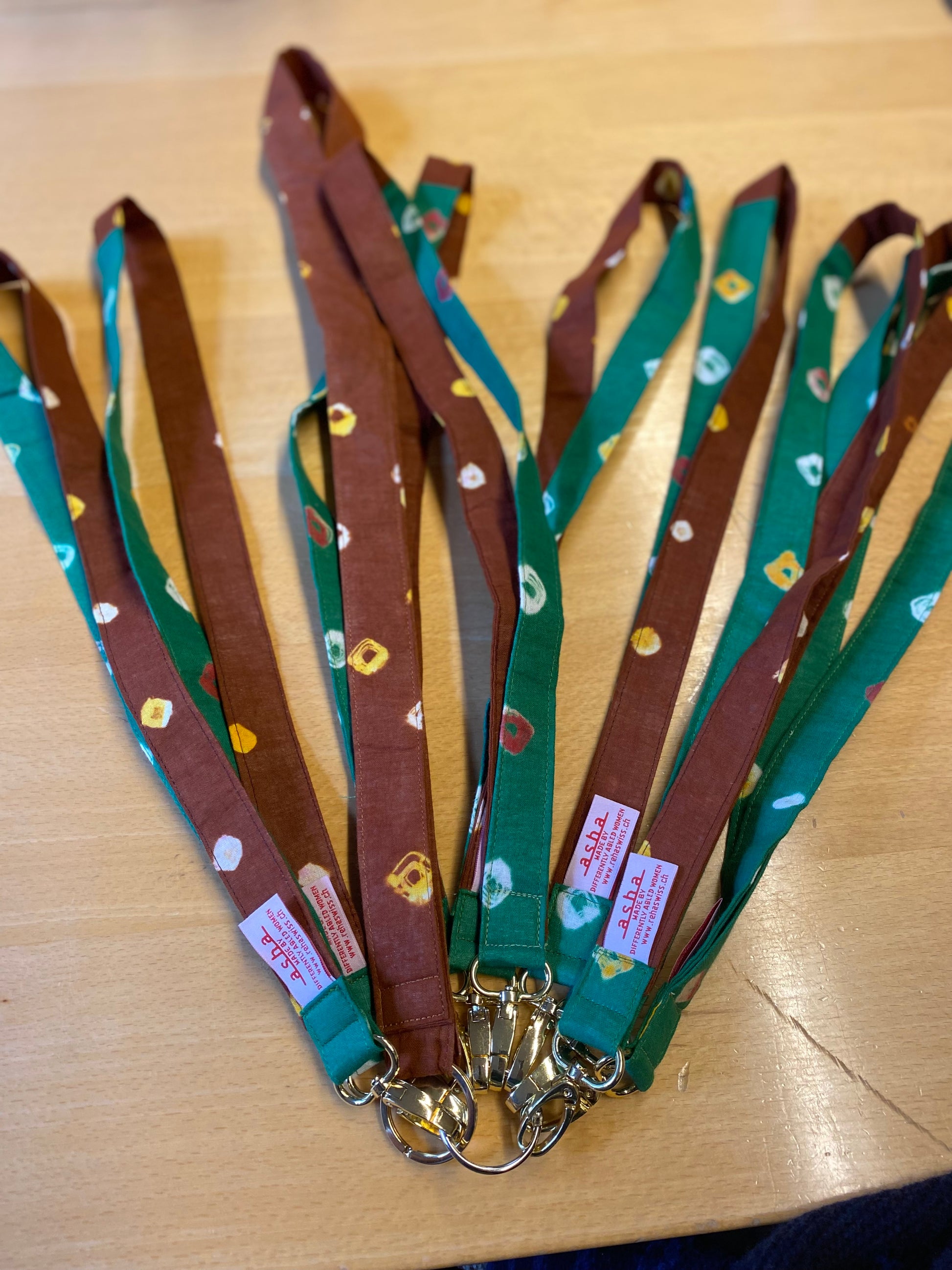 Mit dem Kauf dieses Produktes ermöglichen Sie fairen Lohn und eine Existenzsicherung für Menschen mit einer Beeinträchtigung, vor allem Frauen in Kerala, Indien. Alle Produkte sind handgefertigt in Heimarbeit und Unikate.