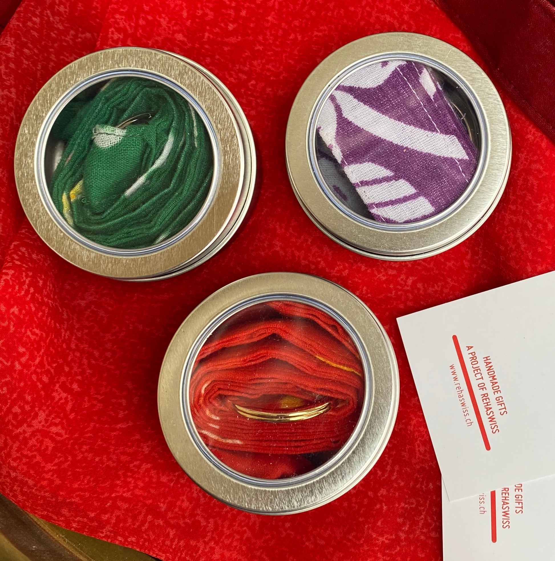 Bitte beachten: Der Erlös vom Verkauf wird reinvestiert in das Frauenprojekt asha, (Hoffnung) des Hilfswerkes REHASWiSS. Jedes unserer Produkte wird mit viel Sorgfalt von Frauen mit Behinderung in Indien handgefertigt. Dabei verwenden sie bestehende Materialien und gestalten daraus etwas Neues – das nennt man Upcycling. So entstehen besondere Einzelstücke, die in Farben, Mustern und Stoffführung leicht vom Beispielbild abweichen können. Designed in der Schweiz – handgefertigt in Indien mit sozialer Wirkung. Siehe auch www.rehaswiss.ch
